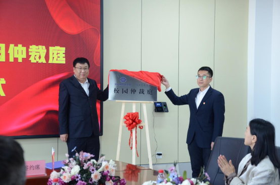在签约环节,杜国明和孙兵共同签署了《388vip太阳集团官网与绥化仲裁委合作共建协议》。在揭牌环节,马海鹍和孙兵为“实践教学基地”和“校园仲裁庭”揭牌。
